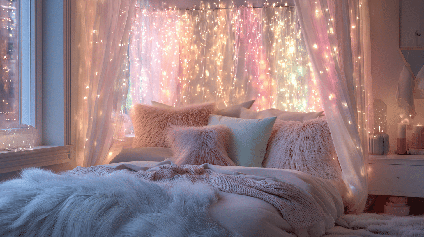 Design a dreamy haven with soft fabrics, blush details, and elegant accents that feel feminine and warm. These cute bedroom ideas create a gentle glow that makes your room feel extra pretty and inviting. Style your own cozy glow haven today.