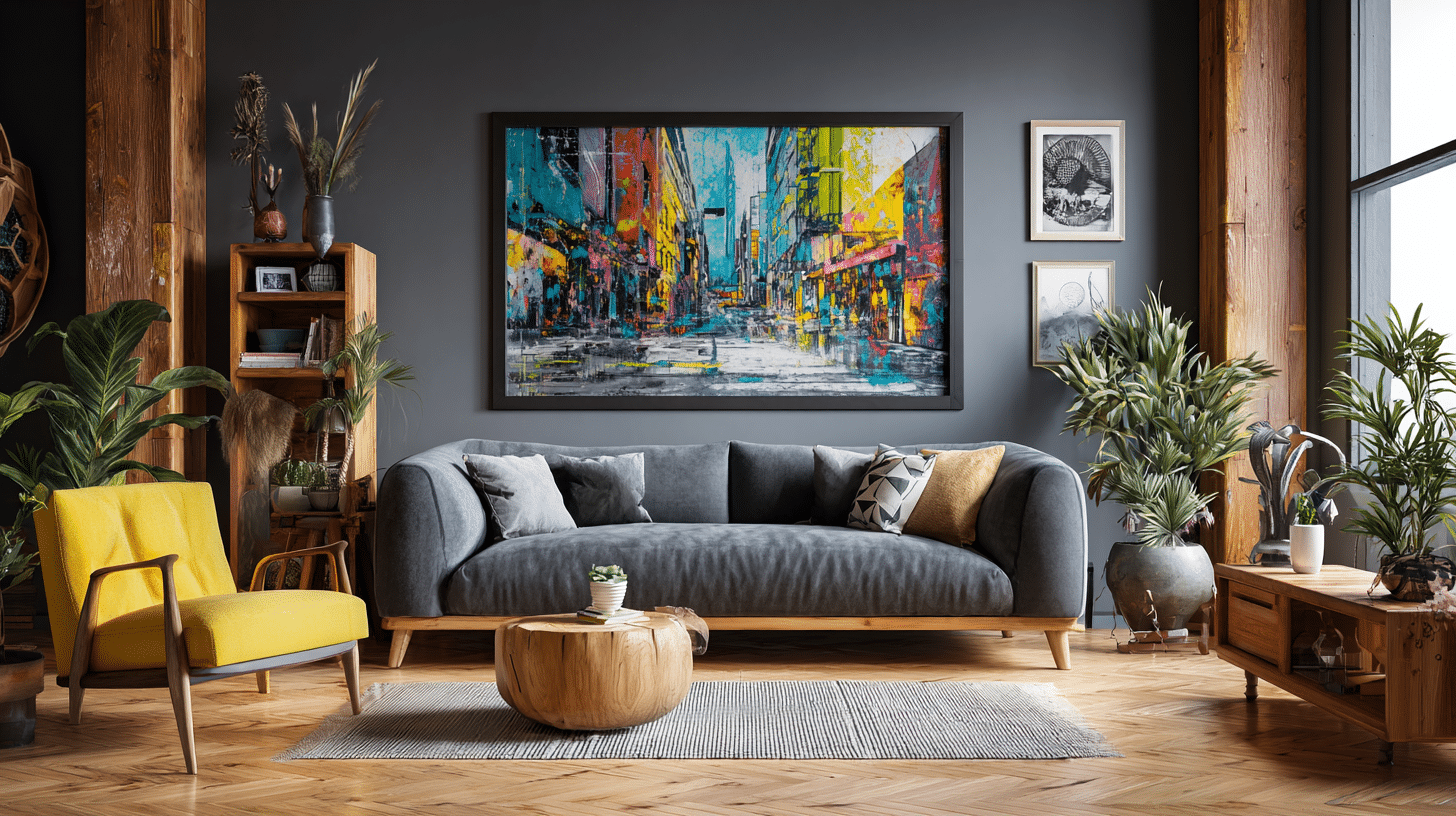 Statement art can make a Dark Grey Couch Living Room feel bold, inspiring, and full of personality. A large canvas, colorful print, or gallery wall adds energy above the sofa while simple surrounding decor lets the artwork shine. Let your walls make an impact and transform your room today.