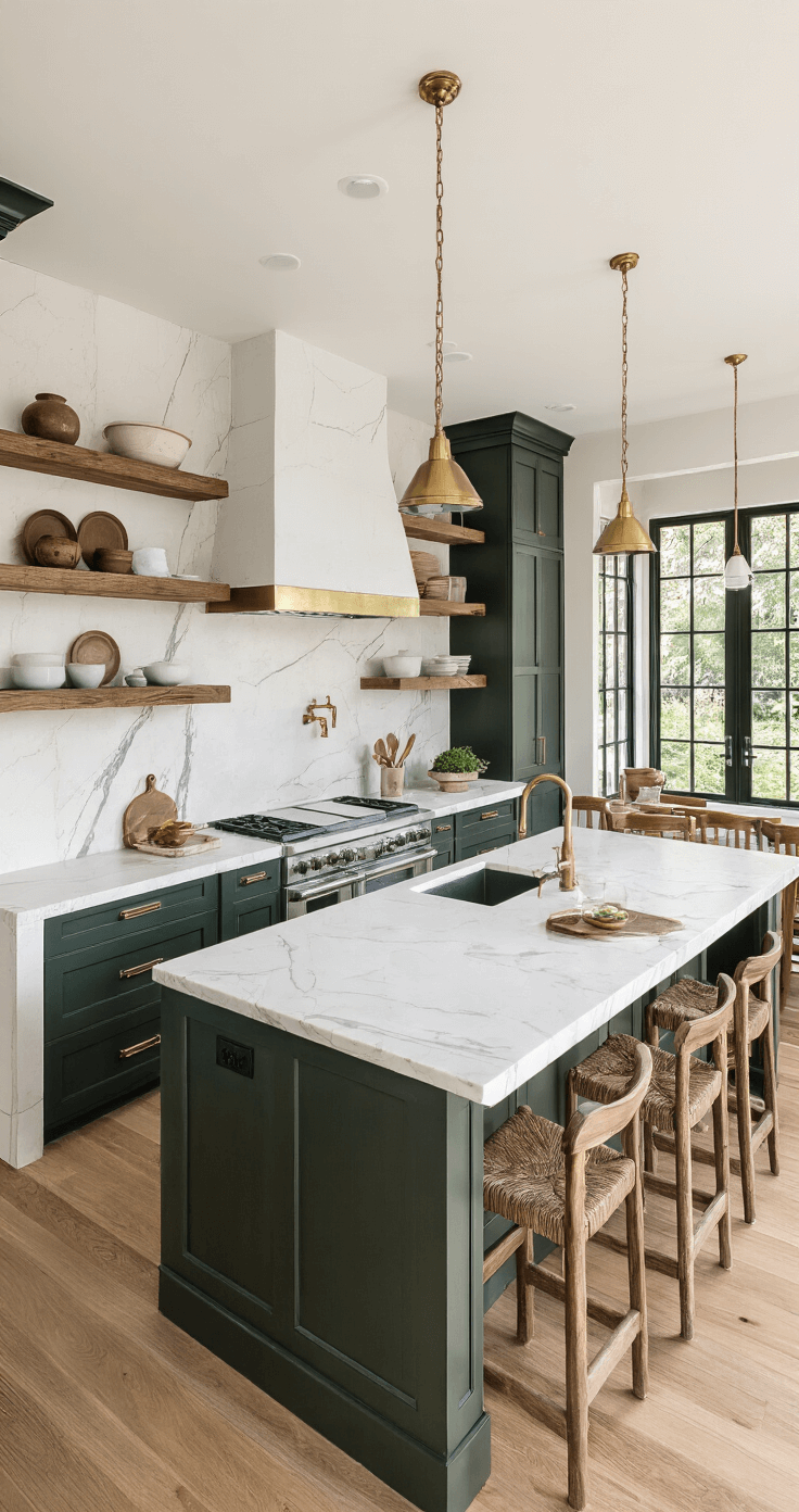 My marble backsplash paired with walnut floating shelves creates a conversation piece that guests always notice.