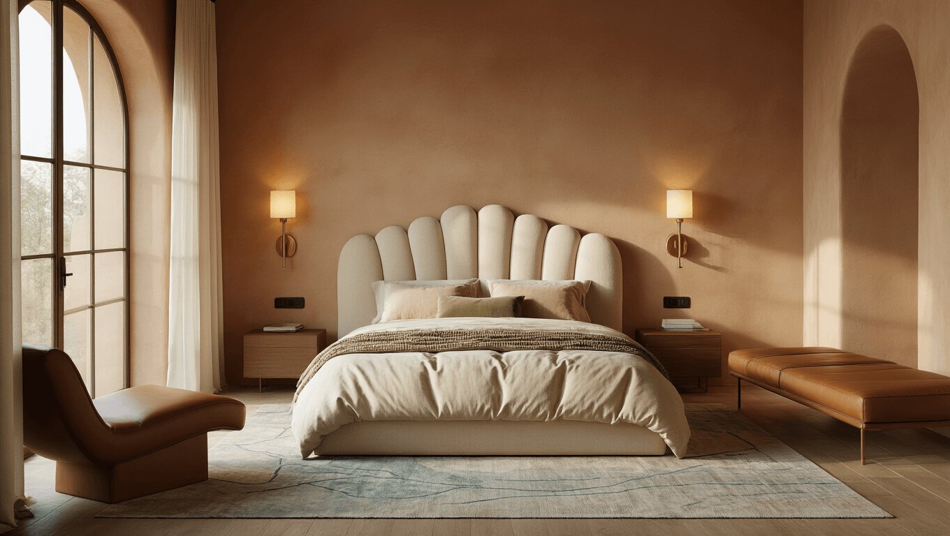 Here’s what nobody tells you about modern bedrooms: the headboard does all the heavy lifting.