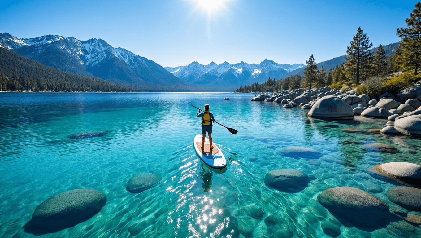Lake Tahoe isn’t just another body of water. It’s a 22-mile long, pristine alpine wonderland that transforms stand-up paddleboarding from a simple sport into an unforgettable adventure.