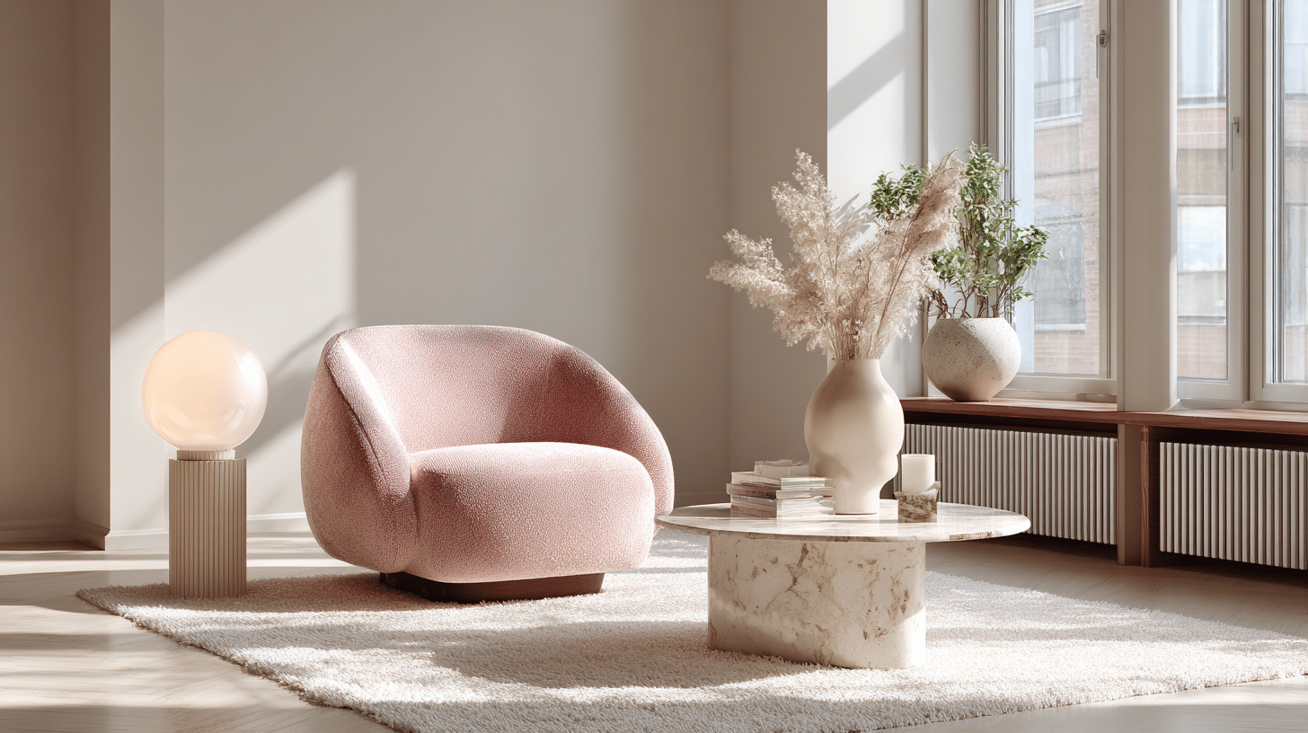 Create a CB2 inspired statement with a sculptural pink chair, sleek table, and bold black or brass details. Pink Living Room Ideas like this feel modern, confident, and full of designer energy. Try one standout piece today and make the room feel exciting.