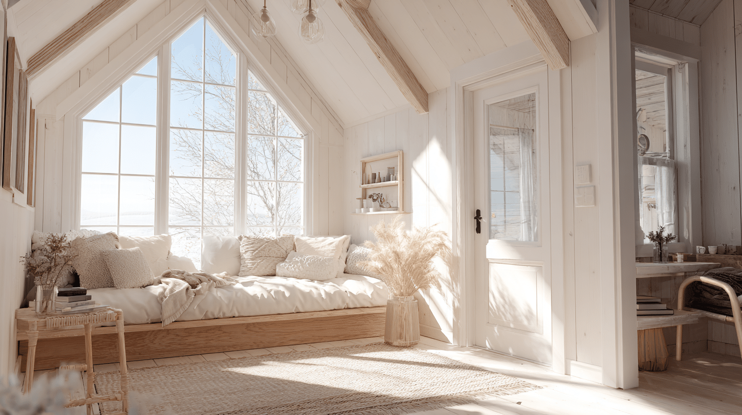 Open up your space with Tiny Cabins Interiors that feel fresh, bright, and uplifting. White tones reflect light beautifully while warm accents keep it cozy. The result feels airy and welcoming. Transform your cabin into a bright escape today.