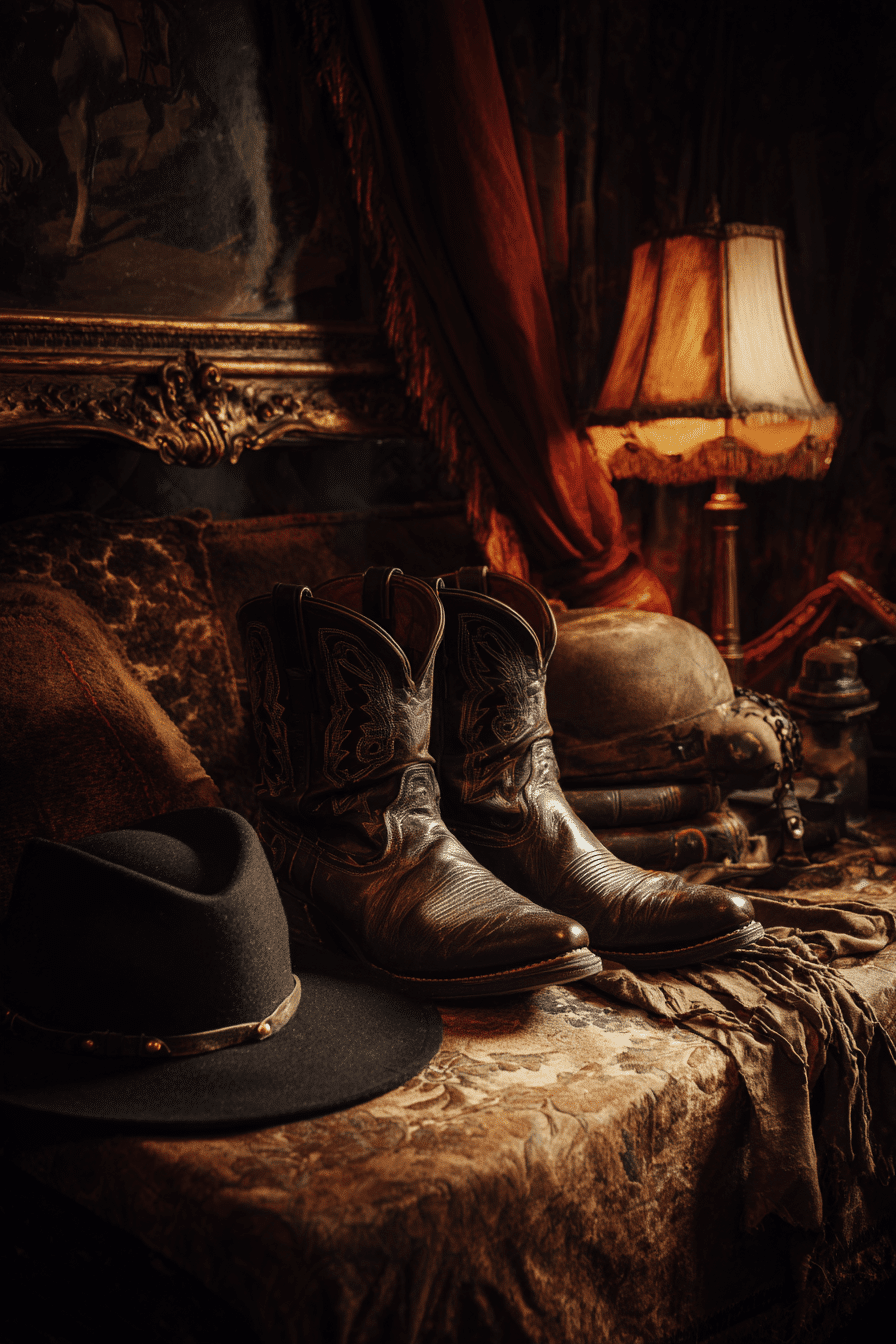 Unique vintage cowboy accents add character to Western Gothic Aesthetic styling. Rustic details bring authenticity while warm tones keep it inviting. Add these standout touches to your home now.