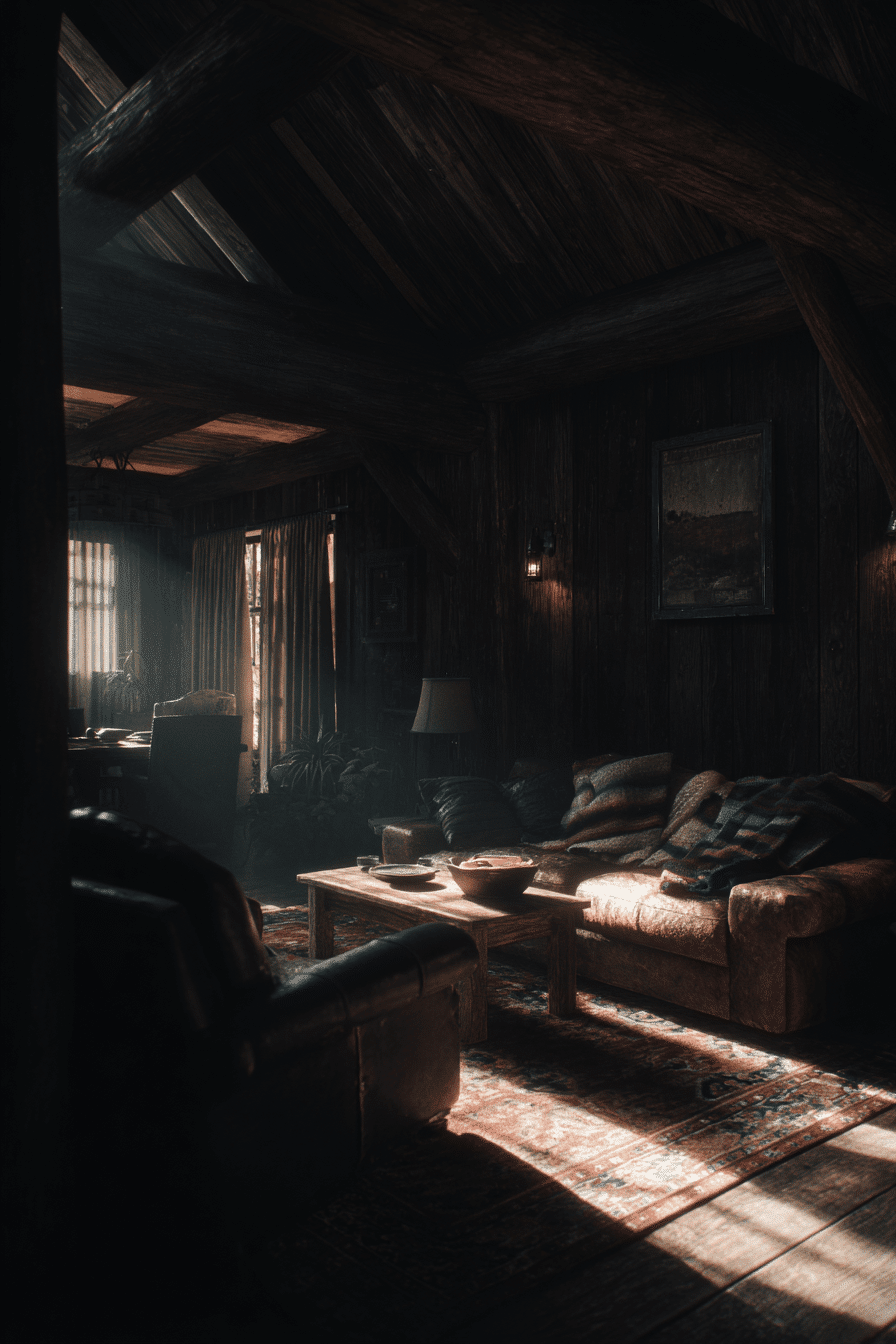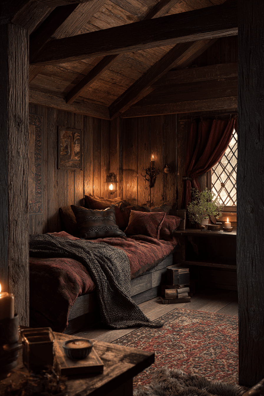 Cozy rustic cabin escape embraces Western Gothic Aesthetic with natural textures and deep tones. Soft layers create warmth while keeping the space inviting. Turn your cabin into a cozy escape now.