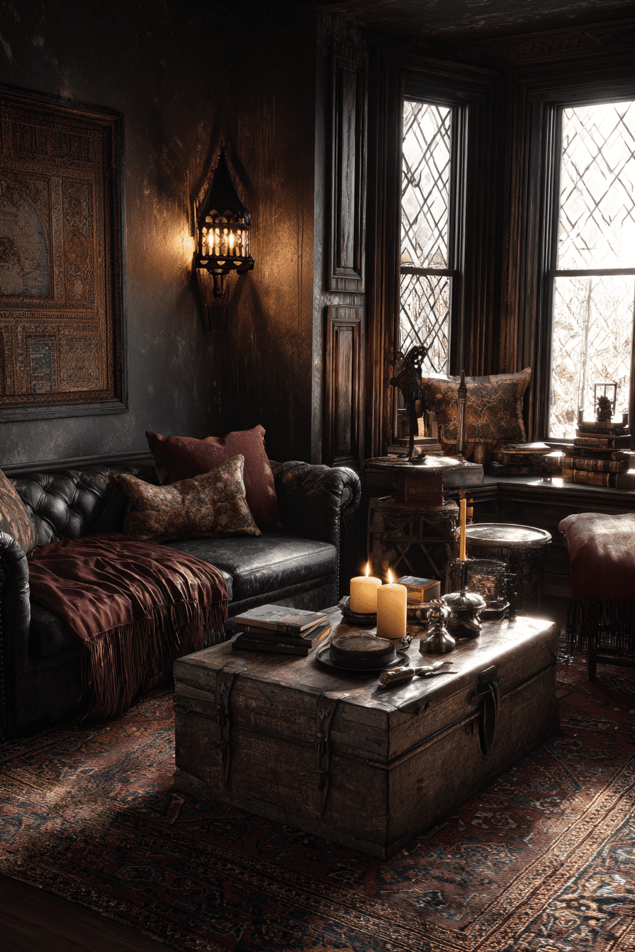 Western Gothic aesthetic blends rugged frontier character with dark elegance to create spaces that feel bold, moody, and unforgettable. By mixing weathered textures, vintage accents, and dramatic details, this style brings together rustic warmth and gothic mystery in a way that feels both striking and deeply personal. These ideas prove that with the right balance, you can turn any room into a hauntingly beautiful space full of charm, depth, and character.